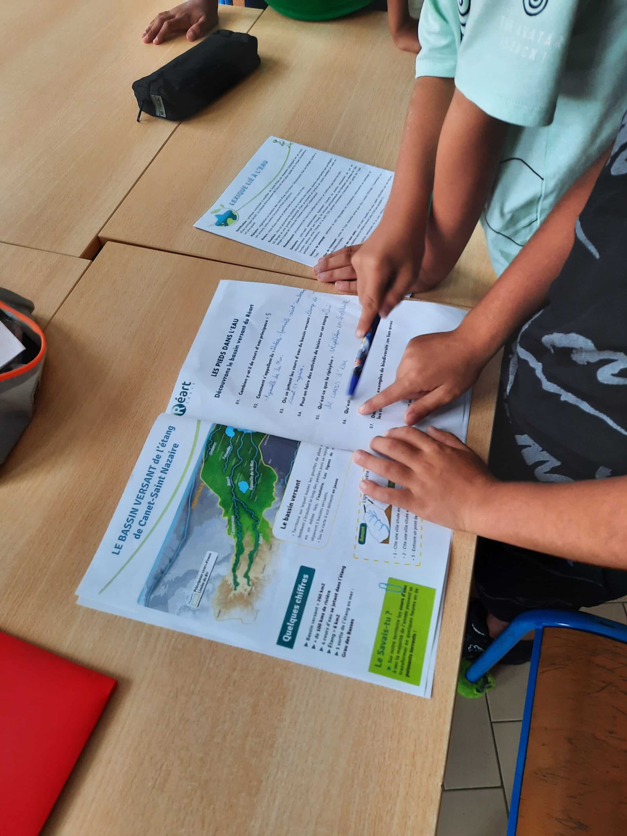 Elles proposent aux élèves de se familiariser avec les missions du Syndicat et un atelier autour de la maquette du Bassin Versant de l’étang de Canet – Saint-Nazaire.